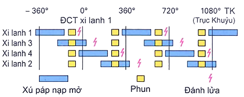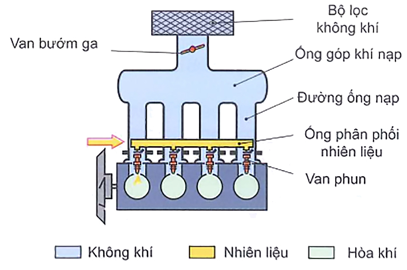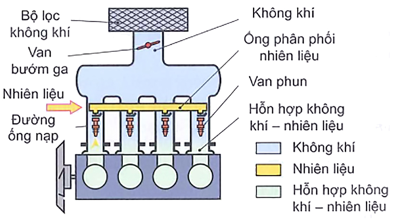 | Số van phun | Một van phun – Một điểm phun | Tùy theo số xy-lanh, phun đa điểm | Tương ứng với số xy-lanh | ||