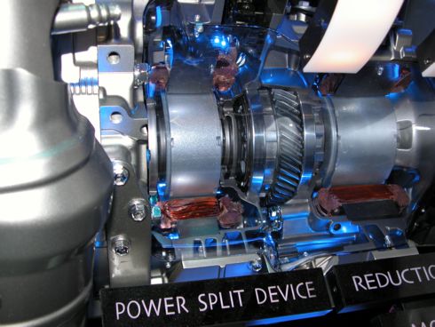 Lực truyền động của động cơ đốt trong được chia ra nhờ 1 bộ truyền động bánh răng hành tinh. Một phần lực truyền động được dẫn đến bánh xe chủ động, trong khi phần khác đi đến động cơ điện MG1 để tạo ra điện. Vì động cơ điện MG2 được nối kết với các bánh xe chủ động nên MG2 phải được vận hành, nếu không, nó sẽ tạo ra hiệu ứng phanh điện từ.